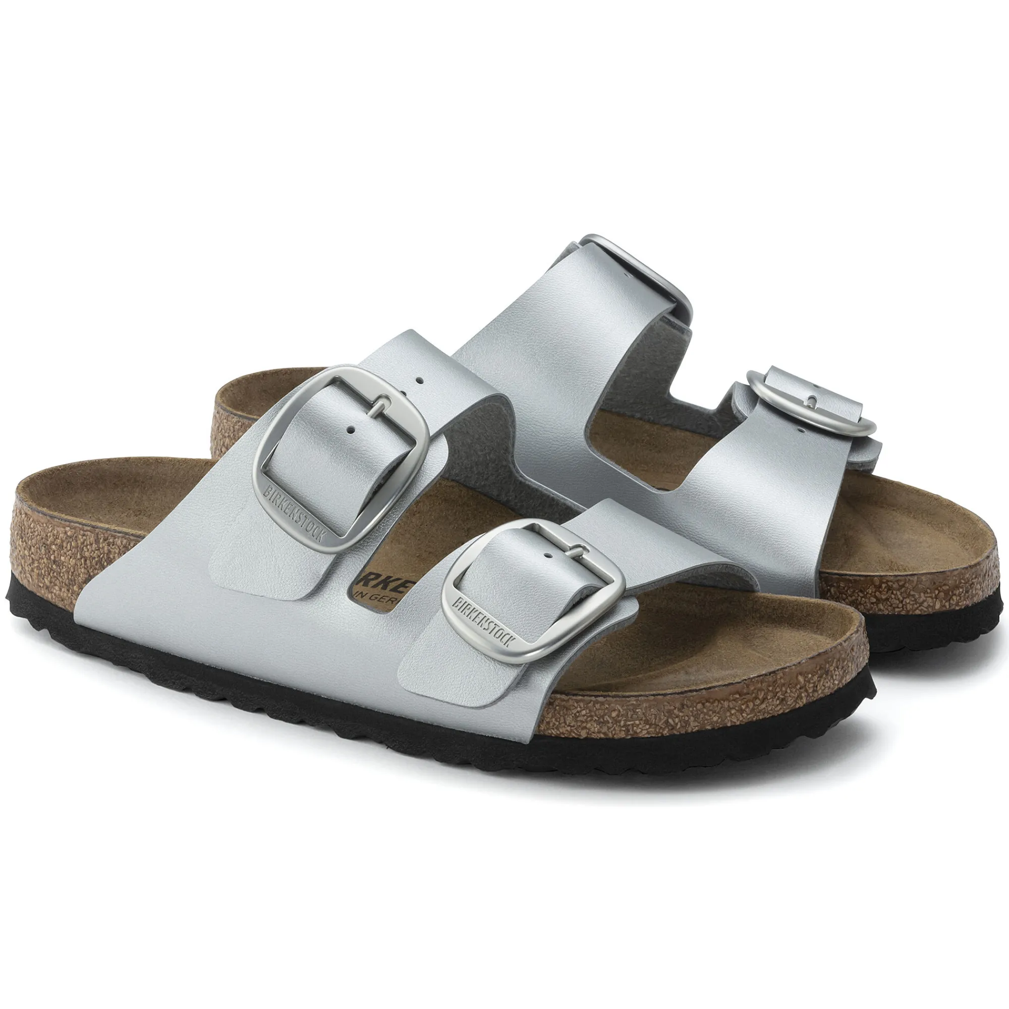 Der BIRKENSTOCK Arizona ist ein echter Klassiker, der Männer und Frauen seit Jahrzehnten mit seinem zeitlosen Design begeistert. Die Variante Big Buckle zeigt sich mit einer großen, eleganten Dornschnalle – ein toller, markanter Blickfang. Diese Sandale wurde im Metallic-Look neu interpretiert. Das Obermaterial besteht aus dem hautfreundlichen, strapazierfähigen Synthetikmaterial Birko-Flor®.