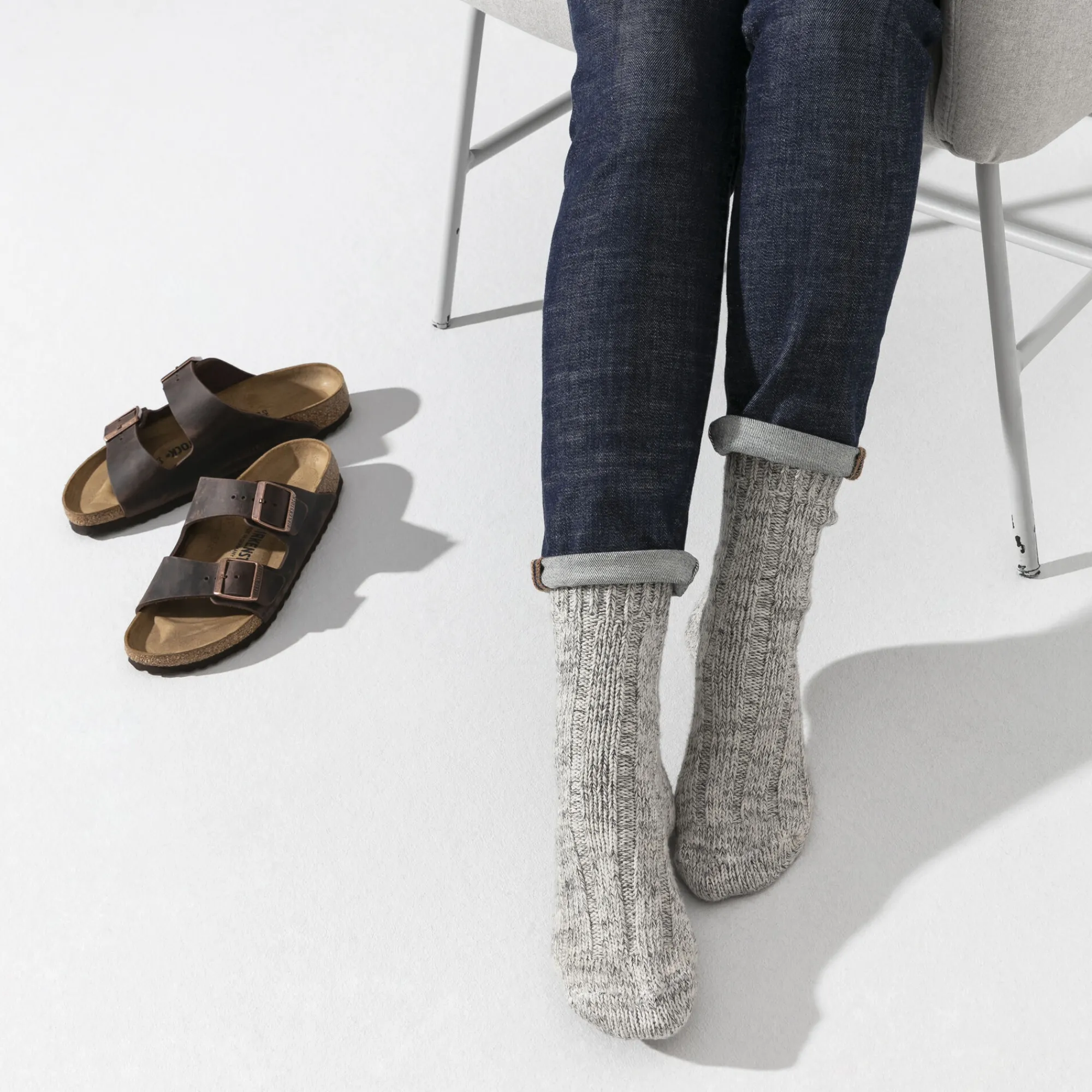 Wohlfühl-Strick für alle! Die BIRKENSTOCK Socke Twist präsentiert sich in authentischer Woll-Optik mit Grobstrick-Struktur. Für einen Überraschungseffekt sorgt das Material. Dank ihres hohen Anteils an Baumwolle ist die Socke angenehm weich und hält die Füße kuschelig warm. Das druckfreie, elastische Bündchen sorgt für eine perfekte Passform.
