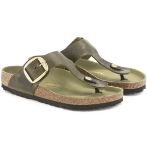 Der BIRKENSTOCK Gizeh ist ein echter Klassiker, der optimalen Halt mit einem minimalistischen, modischen Design vereint. Die Variante Big Buckle zeigt sich mit einer großen, eleganten Dornschnalle – ein toller, markanter Blickfang auf der ansonsten schlicht gehaltenen Sandale. Die Decksohle des Halb-Exquisit-Fußbettes ist mit weichem Glattleder bezogen und farblich auf den Schuh abgestimmt. Das Obermaterial besteht aus besonders dickem, Glattleder, das offenkantig verarbeitet wurde.