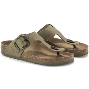 Der BIRKENSTOCK Gizeh ist ein echter Klassiker, der optimalen Halt mit einem minimalistischen, modischen Design vereint. Diese Variante zeigt sich mit unserer beliebten Big Buckle. Die Sandale wurde mit einem Material-Update versehen und ist ab sofort in einer veganen Version erhältlich. Sie ist komplett frei von tierischen Bestandteilen, was unabhängige Prüflabore kontrollieren. Die bedruckten Schnallen sorgen für einen besonderen Blickfang. Das Obermaterial besteht aus anschmiegsamem Textil.