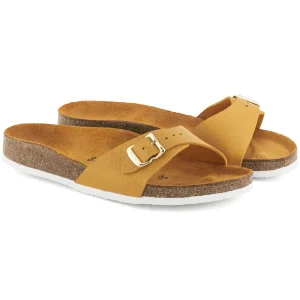Der BIRKENSTOCK Madrid ist das älteste Mitglied der Modellfamilie und somit ein echter Klassiker. Vor einem halben Jahrhundert als „Gymnastik-Sandale“ lanciert, hat sich der puristische Einriemer längst zum modischen Begleiter entwickelt. Mit unserer Anniversary Kollektion lassen wir den beliebten Klassiker nun wieder in seinem ursprünglichen Design erstrahlen. Die Sandale gleicht mit ihren Schnallen, dem Fußbett, der Laufsohle und auch ihrer Verpackung dem Original von 1963 und versprüht echten Retro-Flair. Jedes Paar der limitierten Auflage mit begrenzter Stückzahl trägt sichtbar seine individuelle Nummer und wird mit dem roten BIRKENSTOCK Siegel sowie passenden Socken geliefert. Das Obermaterial besteht aus weichem, genarbtem Naturleder.