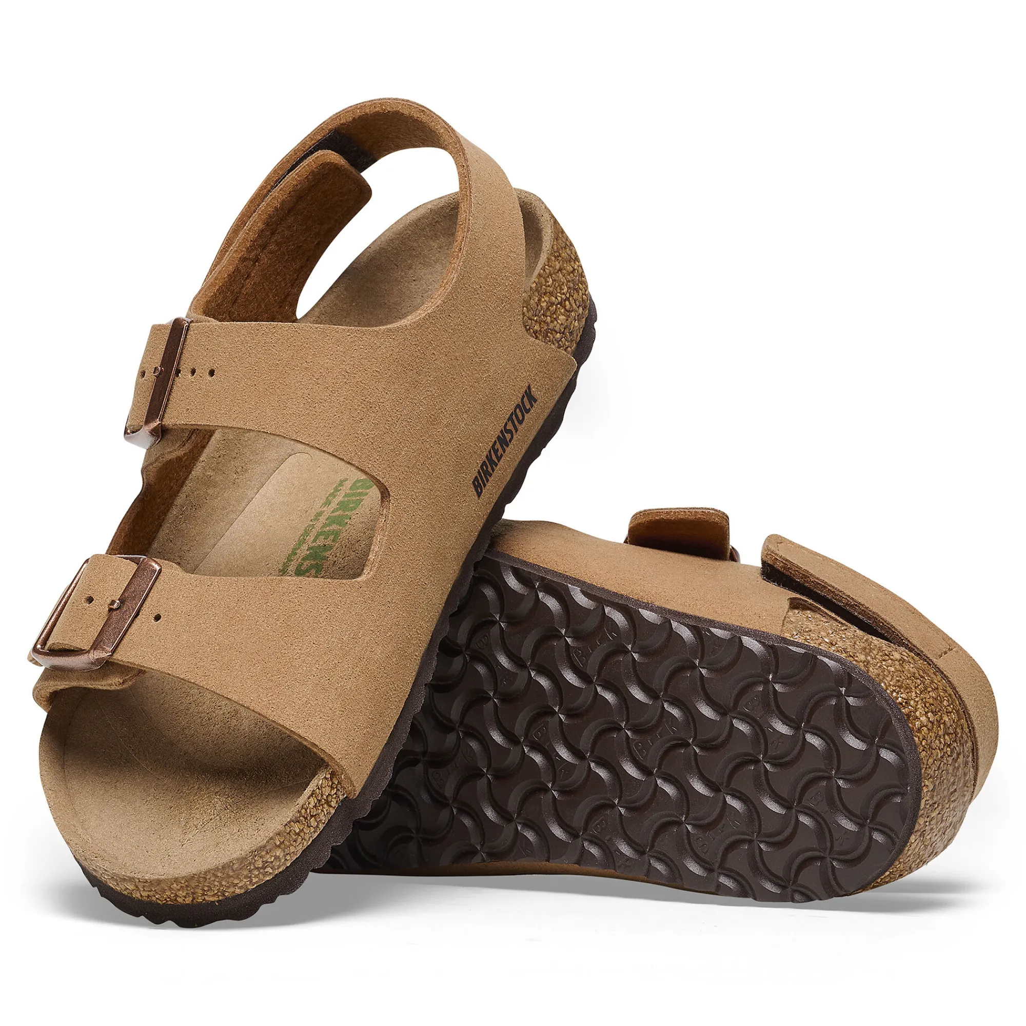 Maximaler Halt, Stabilität und optimaler Sitz! Der BIRKENSTOCK Milano HL besticht mit seiner Funktionalität. Der Klettverschluss verhindert durch seine einfache Handhabung Stress am frühen Morgen. Außerdem sorgt er dafür, dass die Sandale beim wilden Toben nicht verloren geht. Die beliebte Sandale wurde mit einem Material-Update versehen und ist ab sofort in einer veganen Version erhältlich. Sie ist komplett frei von tierischen Bestandteilen, was unabhängige Prüflabore kontrollieren. Das Obermaterial besteht aus einem hautfreundlichen Synthetikmaterial mit samtiger Haptik.