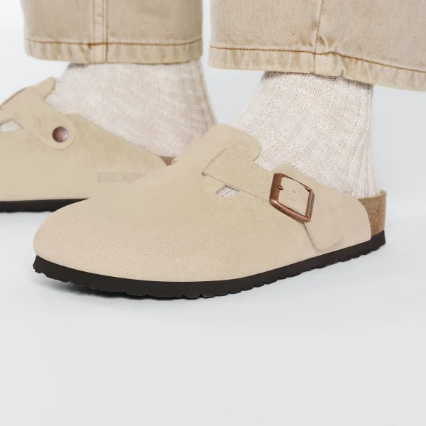 Der BIRKENSTOCK Boston ist ein echter Klassiker, der sich problemlos das ganze Jahr über tragen lässt. Mit seinem raffinierten, individuell verstellbaren Design genießt der Boston längst Legendenstatus. Für ein natürliches Design sorgt das Obermaterial aus besonders weichem Veloursleder, das sich wie eine zweite Haut an den Fuß anschmiegt.