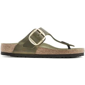 Der BIRKENSTOCK Gizeh ist ein echter Klassiker, der optimalen Halt mit einem minimalistischen, modischen Design vereint. Die Variante Big Buckle zeigt sich mit einer großen, eleganten Dornschnalle – ein toller, markanter Blickfang auf der ansonsten schlicht gehaltenen Sandale. Die Decksohle des Halb-Exquisit-Fußbettes ist mit weichem Glattleder bezogen und farblich auf den Schuh abgestimmt. Das Obermaterial besteht aus besonders dickem, Glattleder, das offenkantig verarbeitet wurde.
