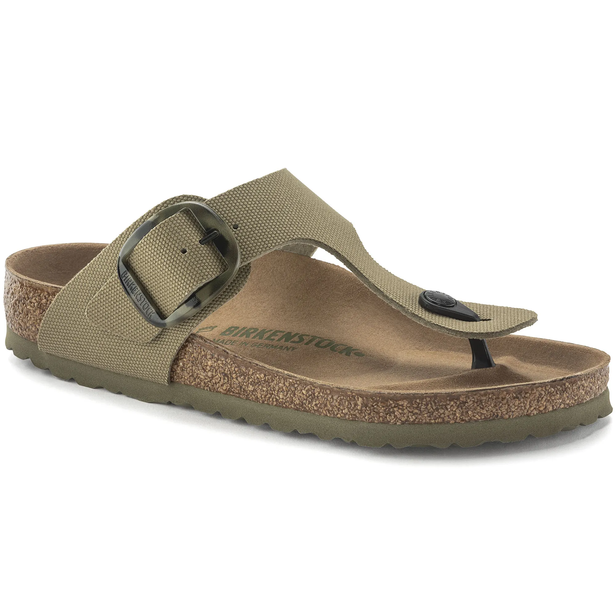 Der BIRKENSTOCK Gizeh ist ein echter Klassiker, der optimalen Halt mit einem minimalistischen, modischen Design vereint. Diese Variante zeigt sich mit unserer beliebten Big Buckle. Die Sandale wurde mit einem Material-Update versehen und ist ab sofort in einer veganen Version erhältlich. Sie ist komplett frei von tierischen Bestandteilen, was unabhängige Prüflabore kontrollieren. Die bedruckten Schnallen sorgen für einen besonderen Blickfang. Das Obermaterial besteht aus anschmiegsamem Textil.