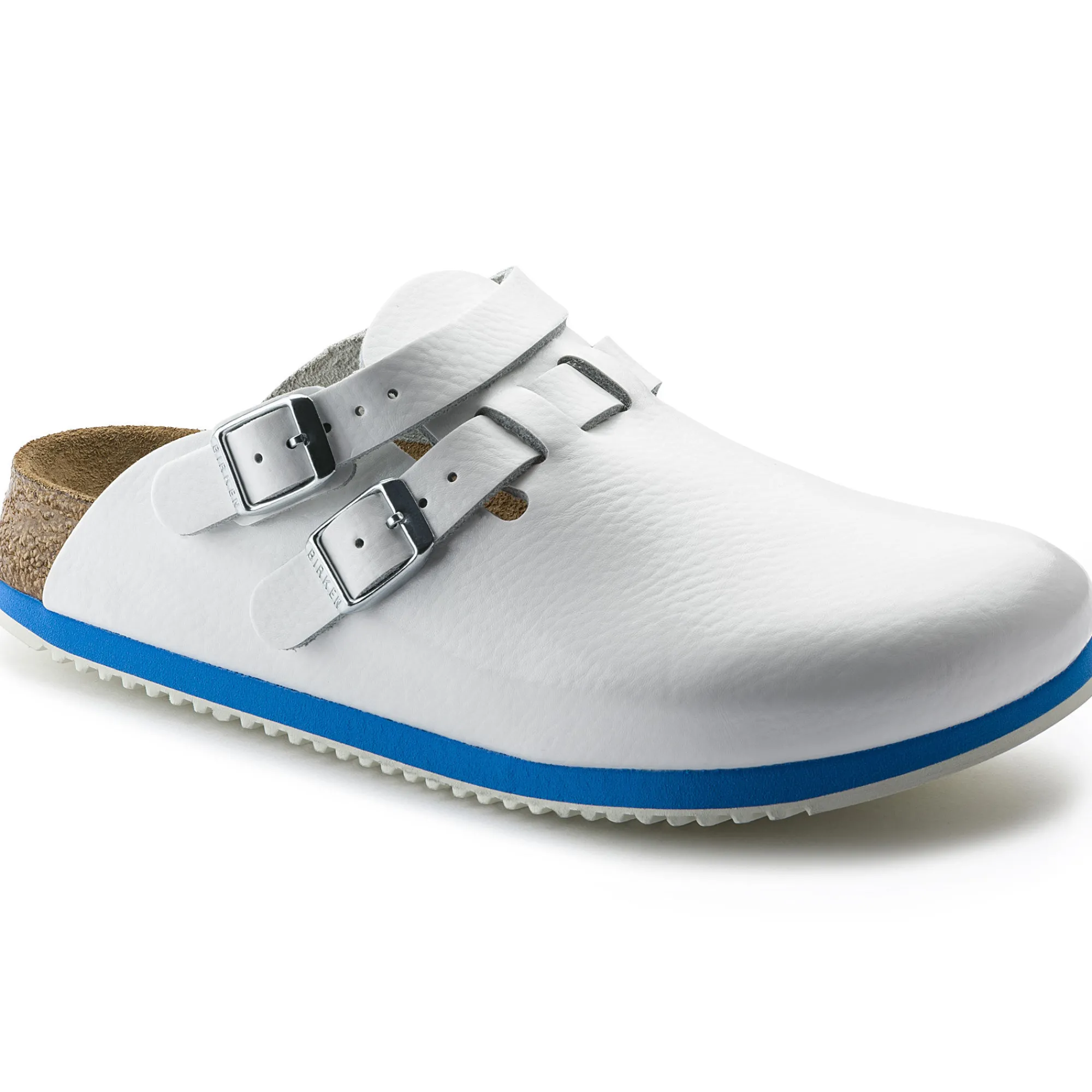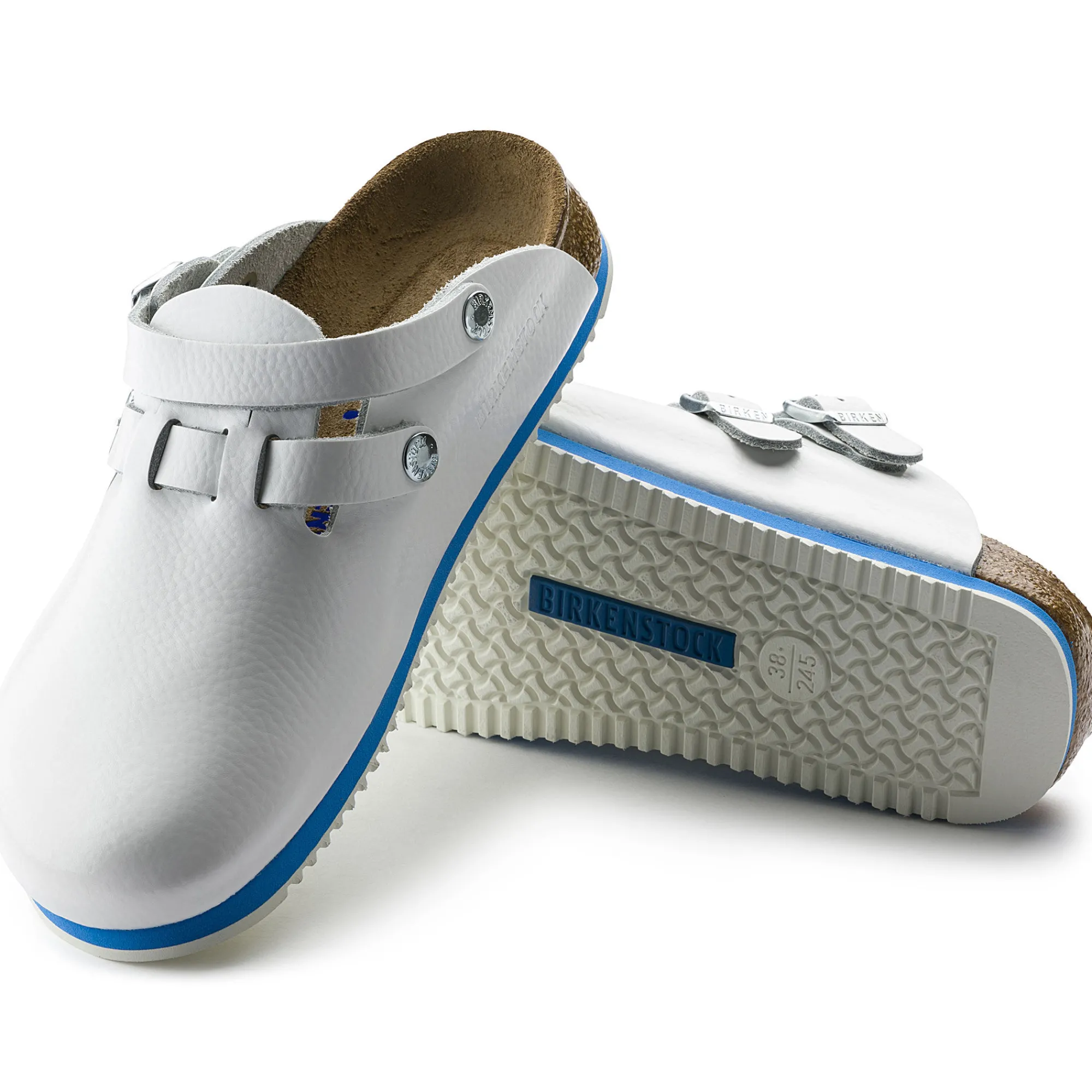 Der Kay SL bietet alle Vorteile der BIRKENSTOCK Klassiker Tokio & Boston kombiniert in einem Modell. Der obere Ristriemen kann bei Bedarf nach hinten umgeklappt werden und bietet dann als Fersenriemen für zusätzlichen Halt. Die Superlaufsohle ist rutschhemmend, rollt ideal ab und zudem öl- und fettbeständig. Ihre Zwischensohle aus EVA verfügt bei der Lederausführung über eine zusätzliche Weichbettung. Sie dämpft dauerhaft und zuverlässig jeden Schritt – auch bei empfindlichen Füßen. Vor allen im medizinischen Bereich ist dieses hohe Maß an Flexibilität und Trittsicherheit gefragt. Alle Superlaufsohlen-Modelle werden nach den Vorgaben der EN ISO 20347:2012 hinsichtlich der Rutschhemmung getestet.